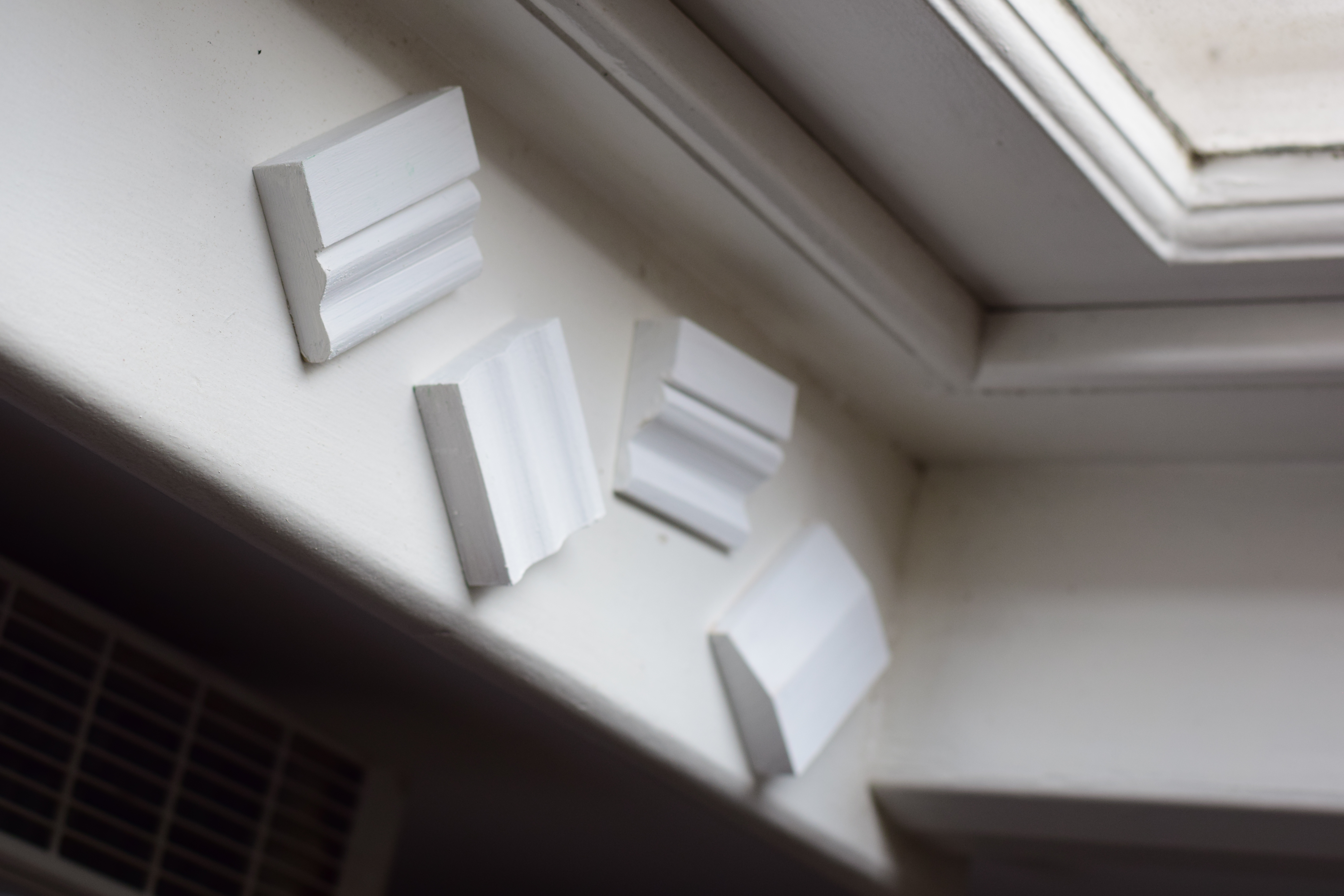 A set of climbing holds made from moulding, to blend in with existing interior detailing.